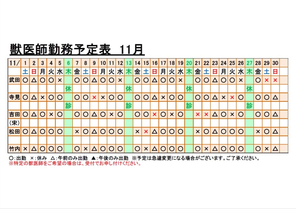 吉田不在 11/16(日)、11/21(金)、11/22(土)